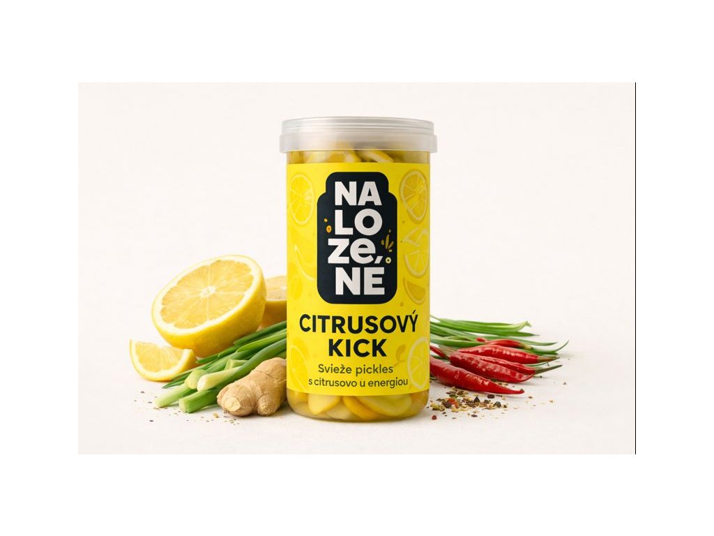 Svieža nakladaná zelenina s citrusovou kyslosťou a jemným štipľavým záverom.